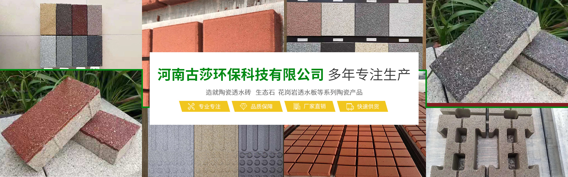 河南古莎環(huán)保科技有限公司總坐落于交通樞紐城市鄭州,是一家具備研發(fā)、生產(chǎn)、銷售能力為一體的綜合性現(xiàn)代化陶瓷企業(yè)。本公司專業(yè)生產(chǎn)經(jīng)營生態(tài)陶瓷透水磚、生態(tài)鋪石、PC仿石材透水磚、PC仿石材景墻磚、普通透水磚、燒結(jié)磚等系列產(chǎn)品,完善的研發(fā)團隊,完善的生產(chǎn)流水線設(shè)備,打造完善的陶瓷企業(yè)。古莎環(huán)保科技現(xiàn)代化陶瓷企業(yè)是美化城市,改善生活環(huán)境質(zhì)量的生態(tài)環(huán)保產(chǎn)品,可廣泛應(yīng)用于公共建筑廣場、城市道路、公園、藝術(shù)景觀、廊道、房地產(chǎn)、別墅住宅小區(qū)、地鐵口、車站、高速公路服務(wù)區(qū)等。古莎環(huán)保科技在原有陶瓷企業(yè)基礎(chǔ)上,另拓展園林綠化、市政施工、瀝青包工包料施工、公路維修等業(yè)務(wù)板塊,專業(yè)培訓了一些園林綠化、市政施工技術(shù)人員,并有多年的施工養(yǎng)護經(jīng)驗以及建筑工程經(jīng)驗。保證市政工程施工質(zhì)量以及園林綠化后期養(yǎng)護規(guī)范化、專業(yè)化。古莎環(huán)保科技所遵循的企業(yè)與品牌發(fā)展思路,是奠定在品質(zhì)與產(chǎn)品應(yīng)用之上。環(huán)保理念由我們共同倡導(dǎo),理性思考,以推進步,感性溝通,以共建優(yōu)越。古莎環(huán)保科技與大家真誠合作,攜手共進,為助力海綿城市建設(shè),建筑高品質(zhì)的綠色城市生活貢獻一份力量!